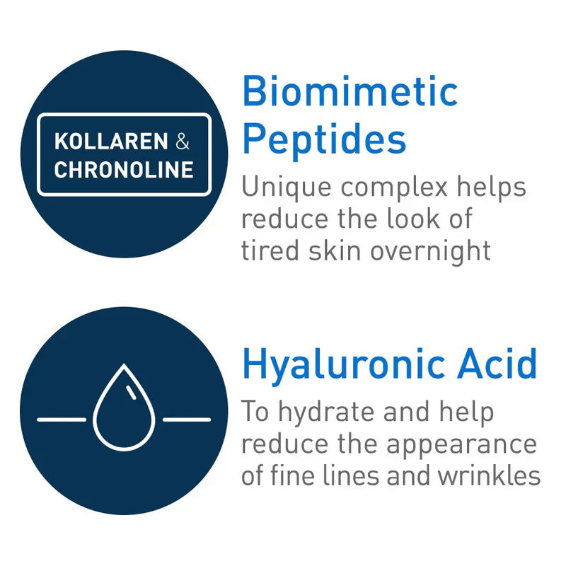 Wake up to refreshed, smoother, and deeply hydrated skin with CeraVe Skin Renewing Night Cream. This rich, non-greasy formula works overnight to restore the skin’s moisture barrier while reducing the appearance of fine lines and wrinkles. Infused with biomimetic peptides, niacinamide, and three essential ceramides, it helps to support skin renewal, calm irritation, and lock in hydration for a youthful glow.